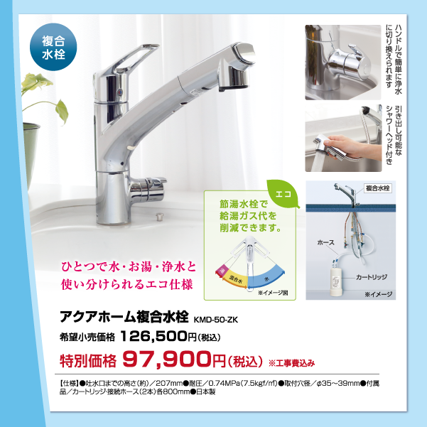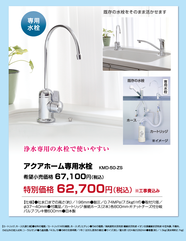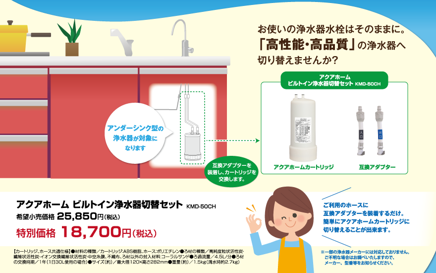 「ビルトイン浄水器切替セット KMD-50CH」は、下記要領にてご購入ください。